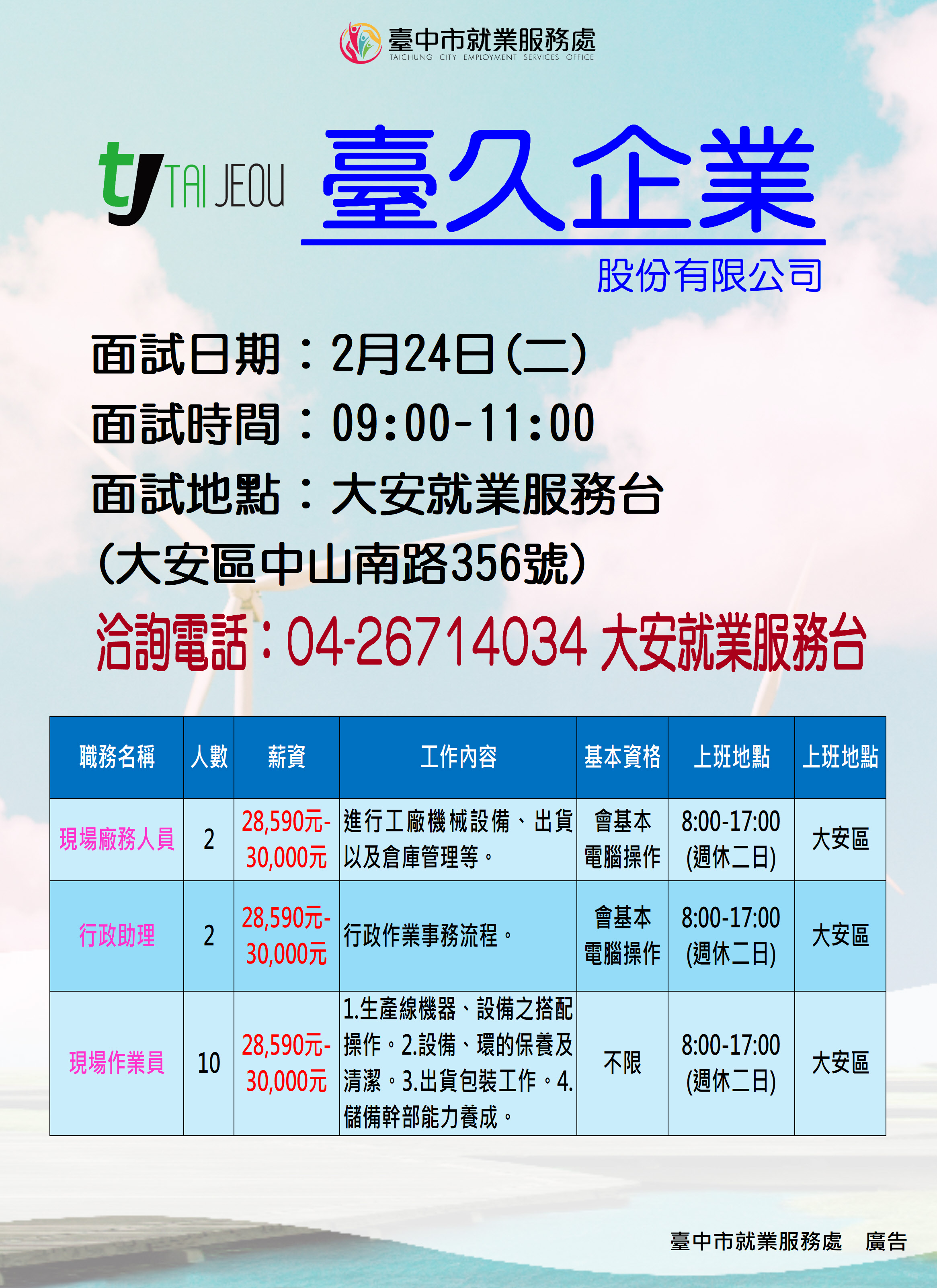 適性就業輔導促進就業計畫-臺中站-02/23(下午場)