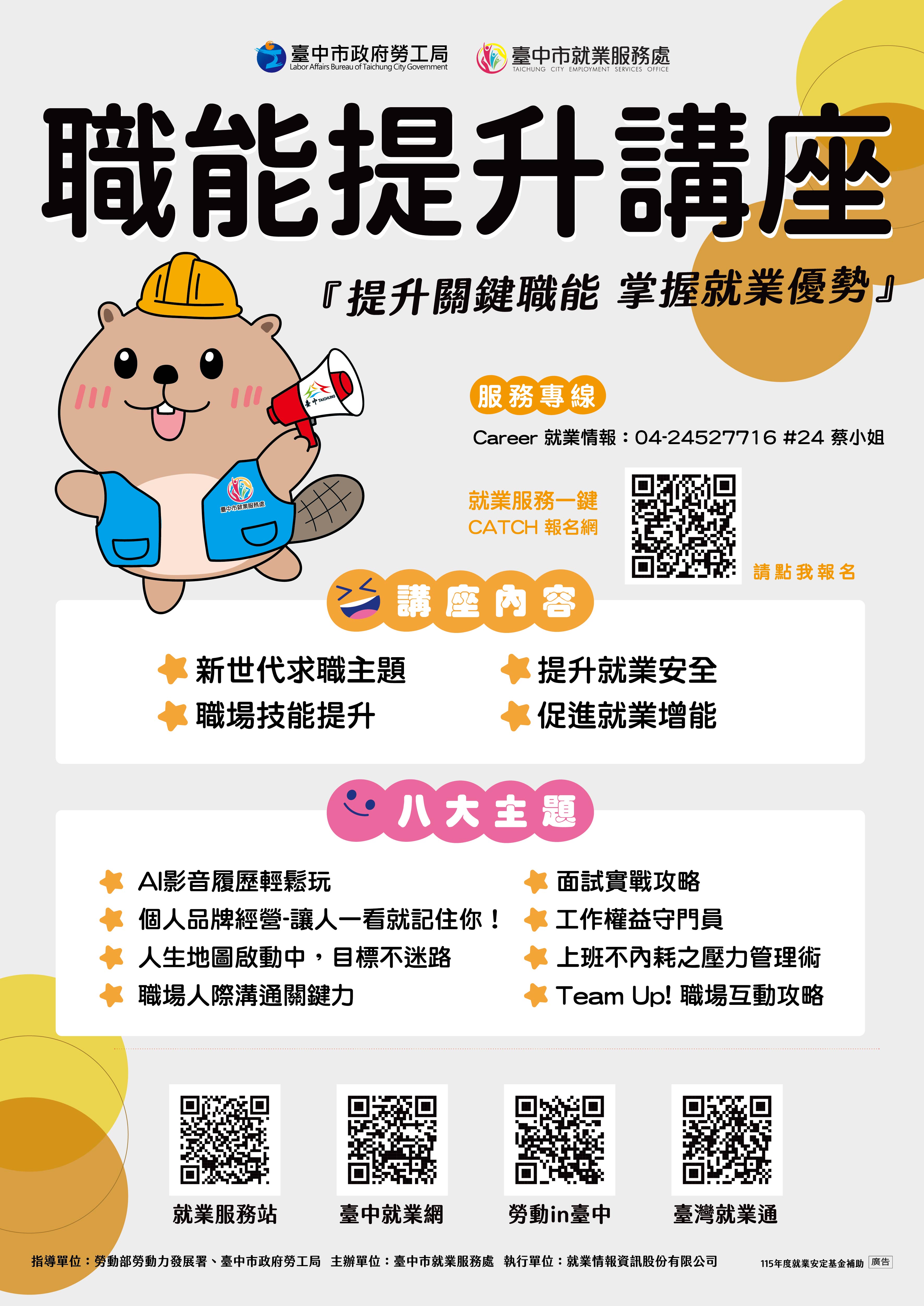 為提升求職競爭力與職場適應能力,特別規劃【職能提升講座】