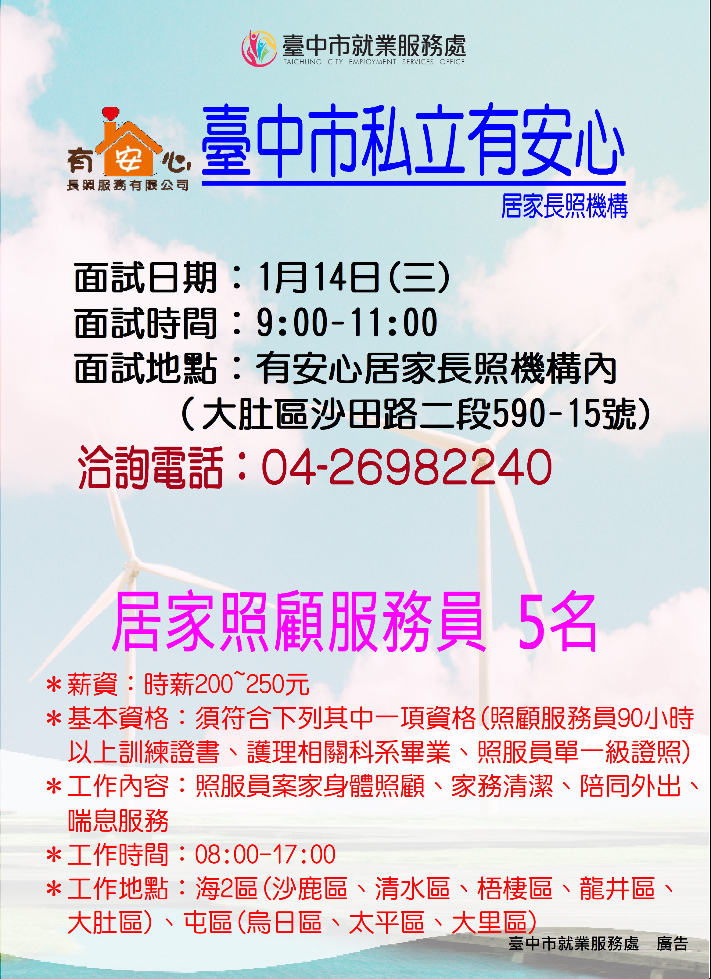 【單一徵才】有安心長照服務有限公司臺中市私立有安心居家長照機構