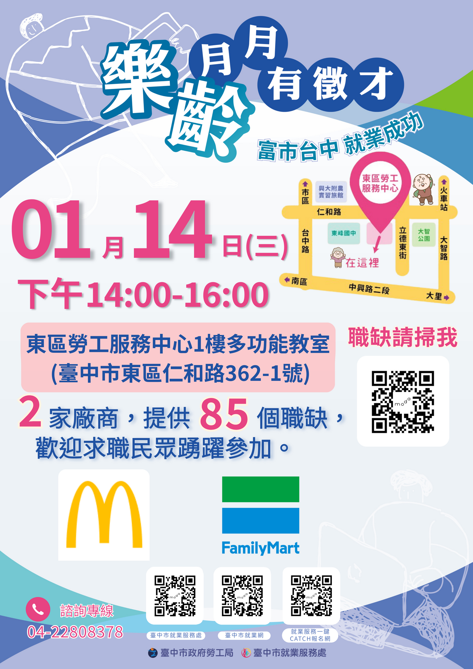 1/14(三)臺中市政府2026「富市台中就業成功」樂齡就業月月有徵才
