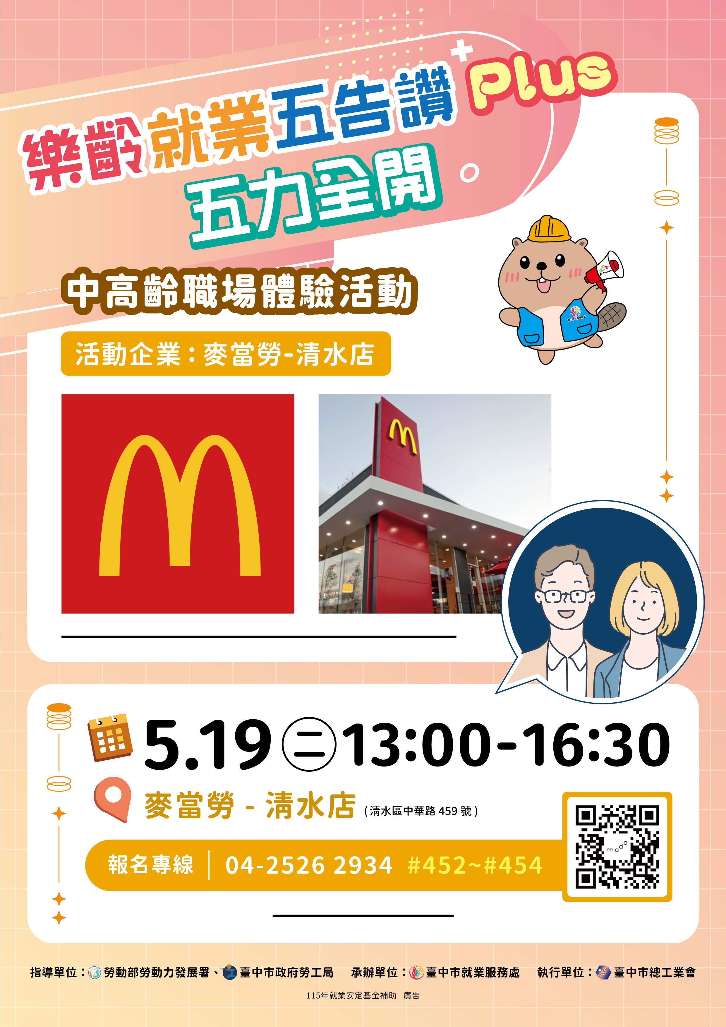 115年度中高齡職場體驗活動【和德昌股份有限公司(麥當勞)】