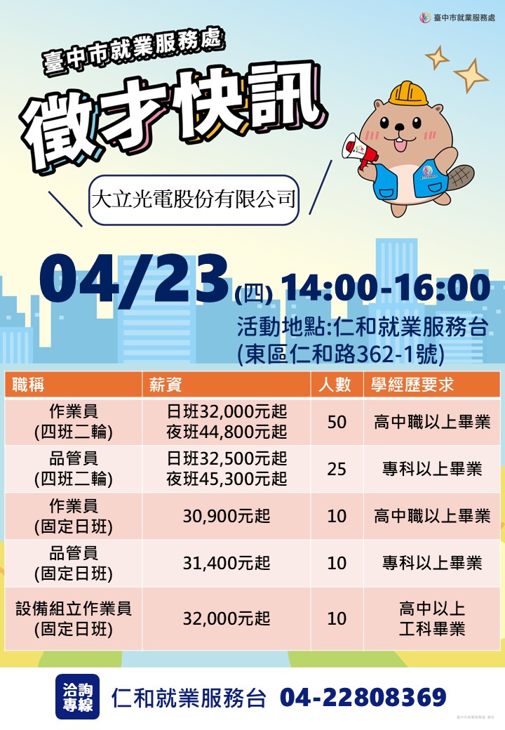 適性就業輔導促進就業計畫-沙鹿站-04/30(下午場)