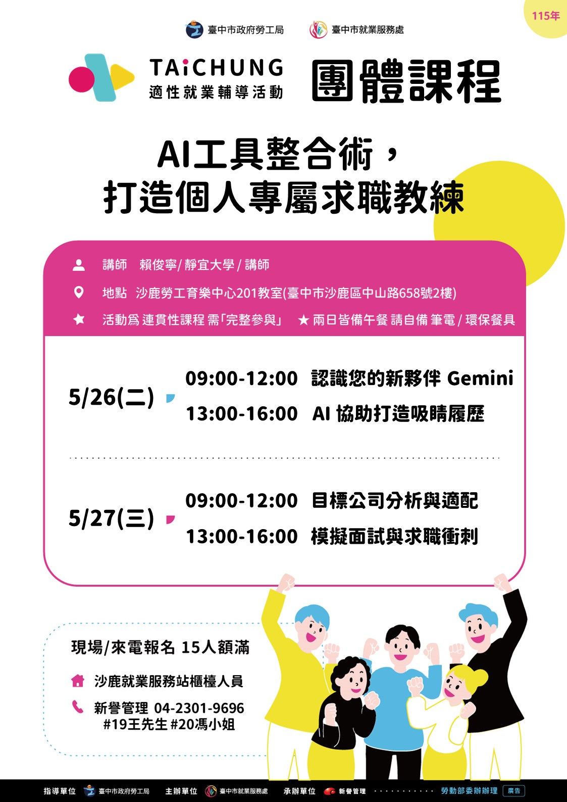 適性就業輔導促進就業計畫-臺中站-05/28(下午場)