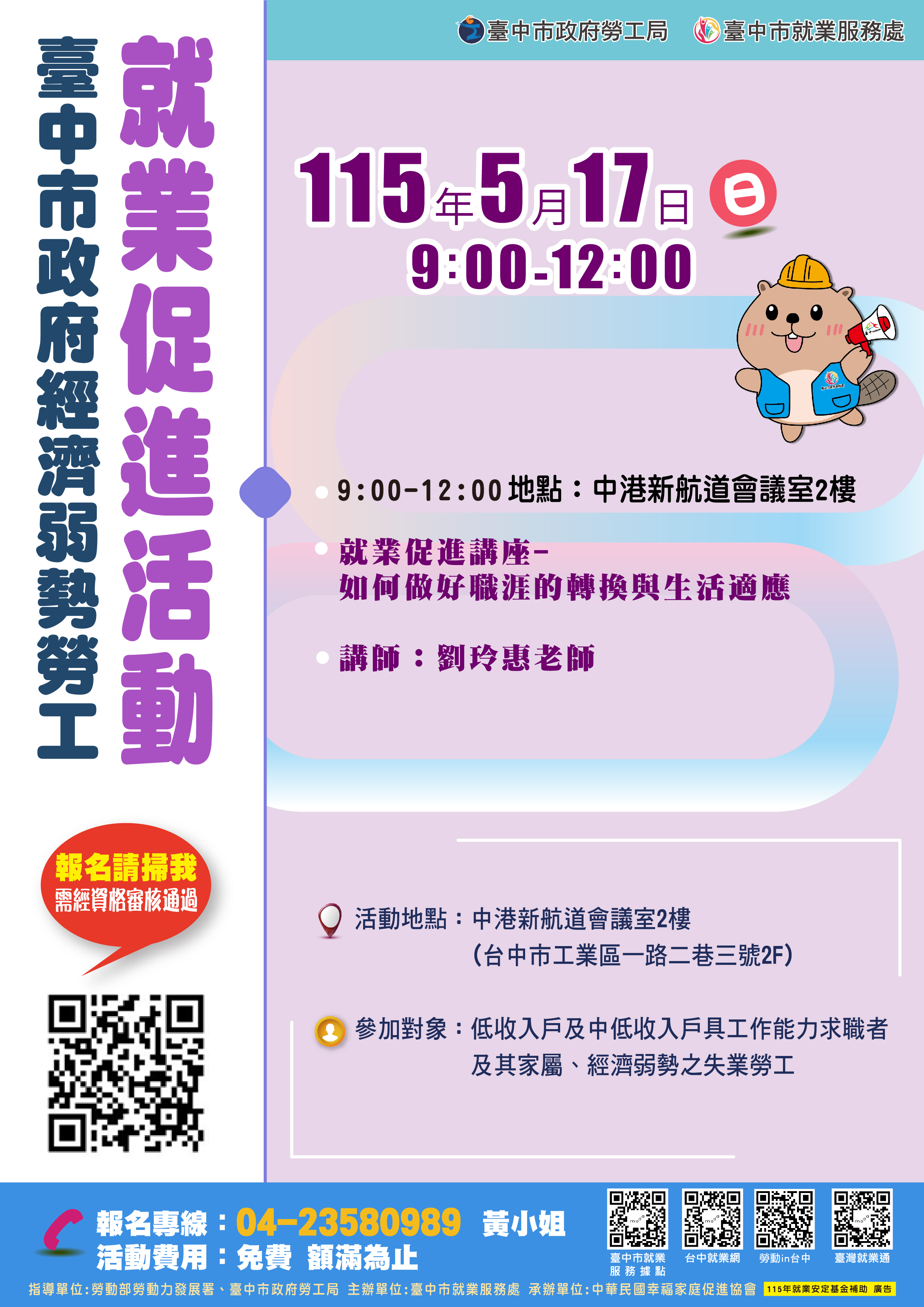 適性就業輔導促進就業計畫-豐原站-05/26(下午場)