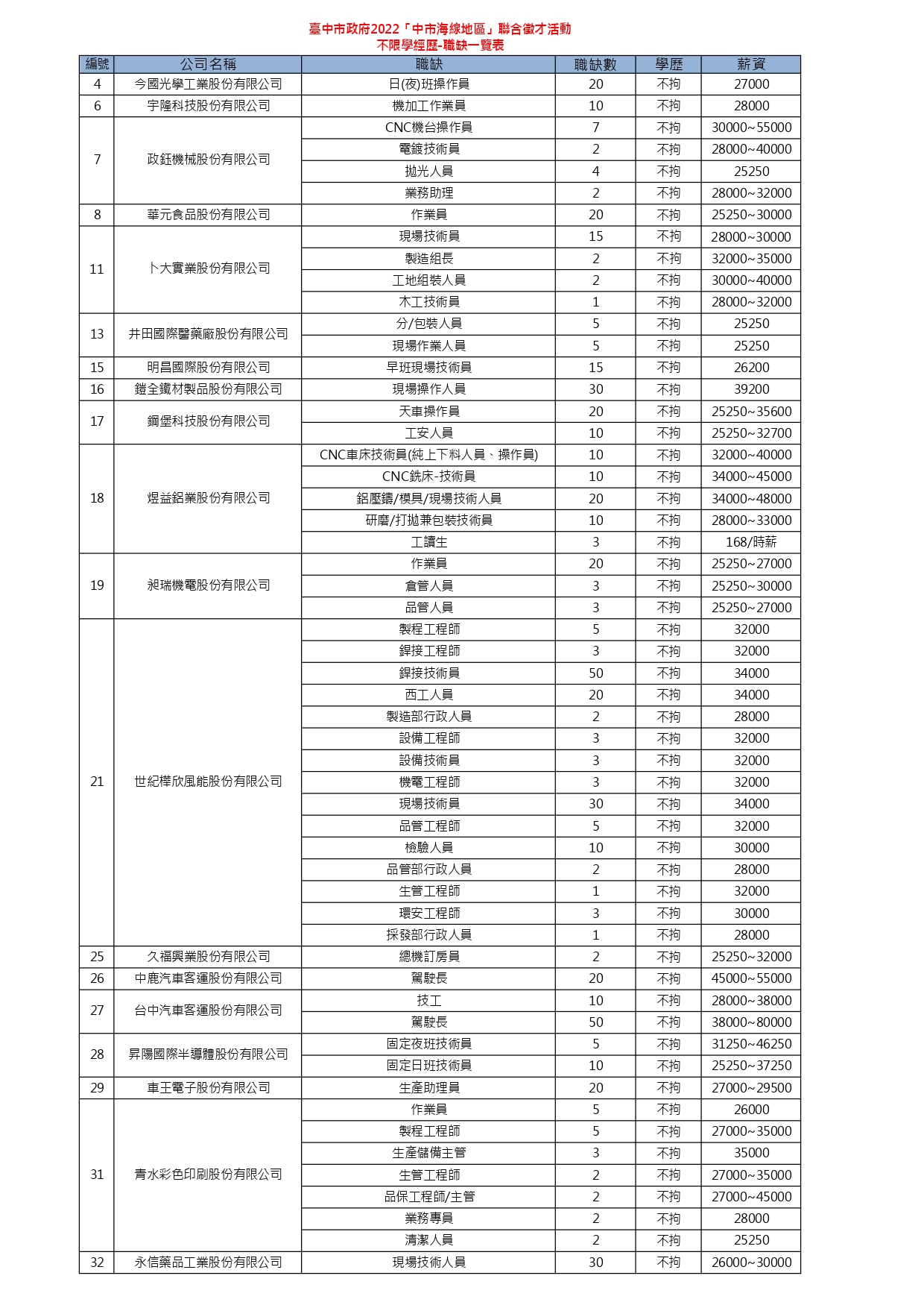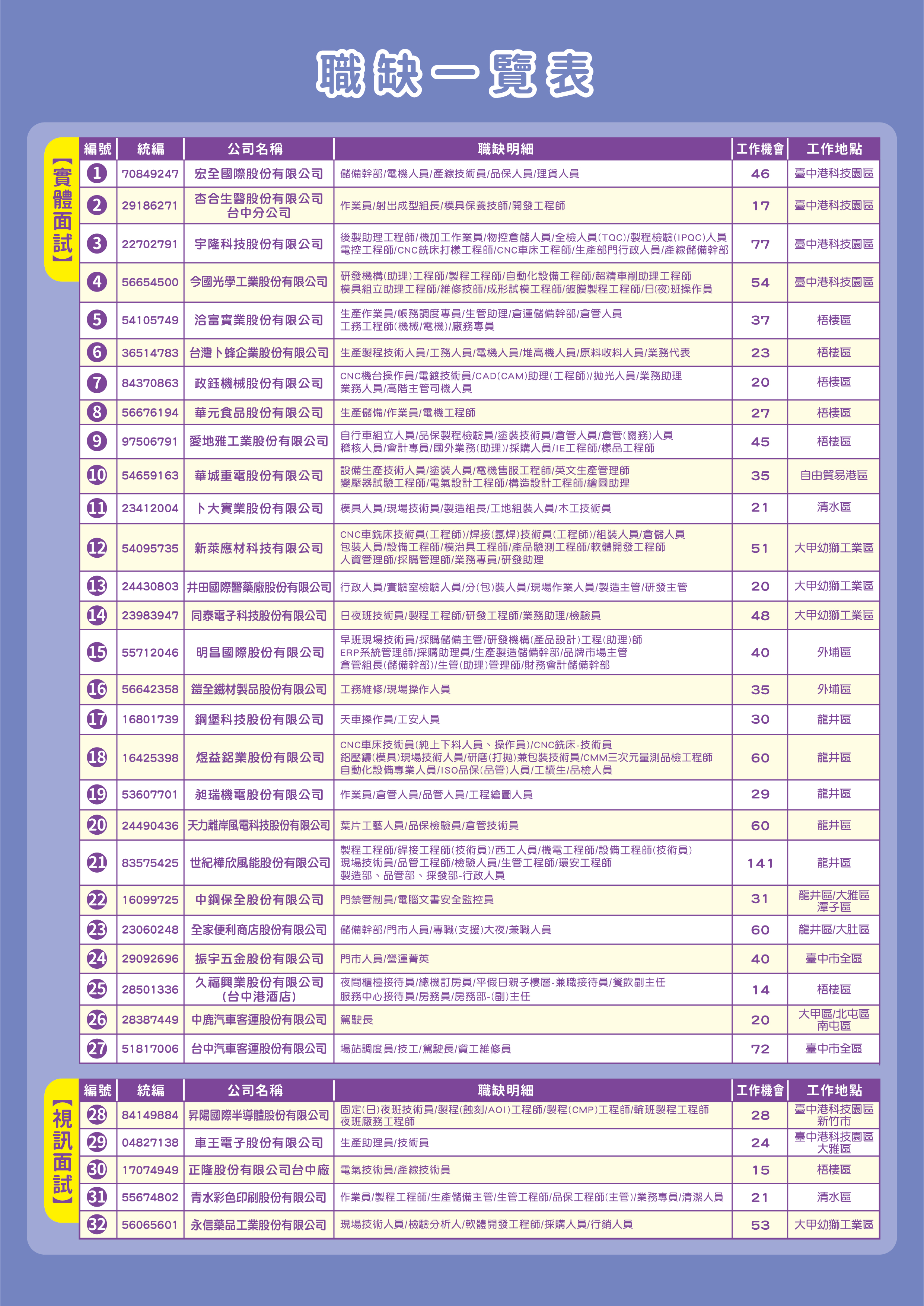 本場次採實體及視訊徵才雙軌並行!邀請 32家廠商,共計1300個工作機會!