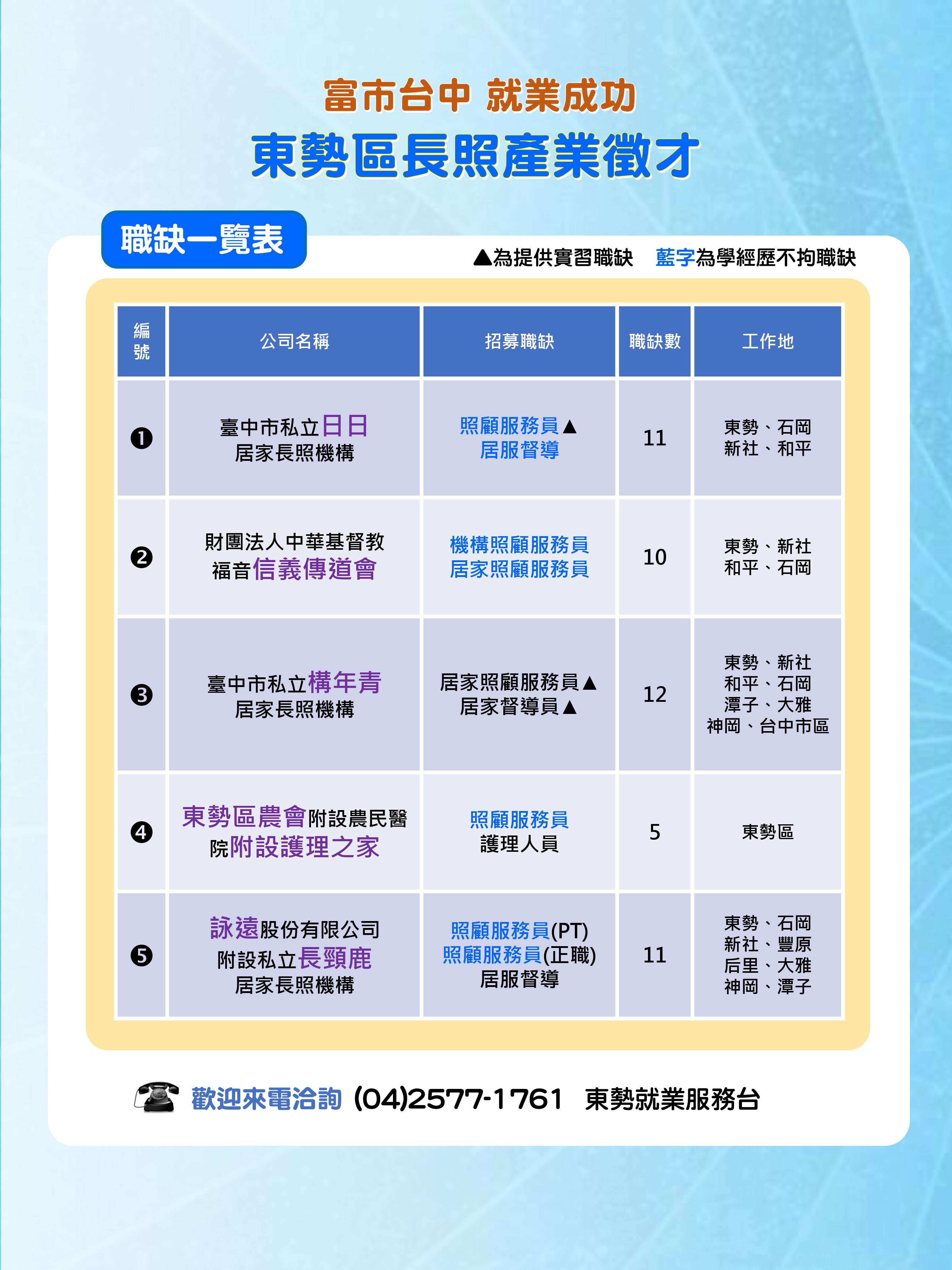 ~東勢區長照產業徵才~