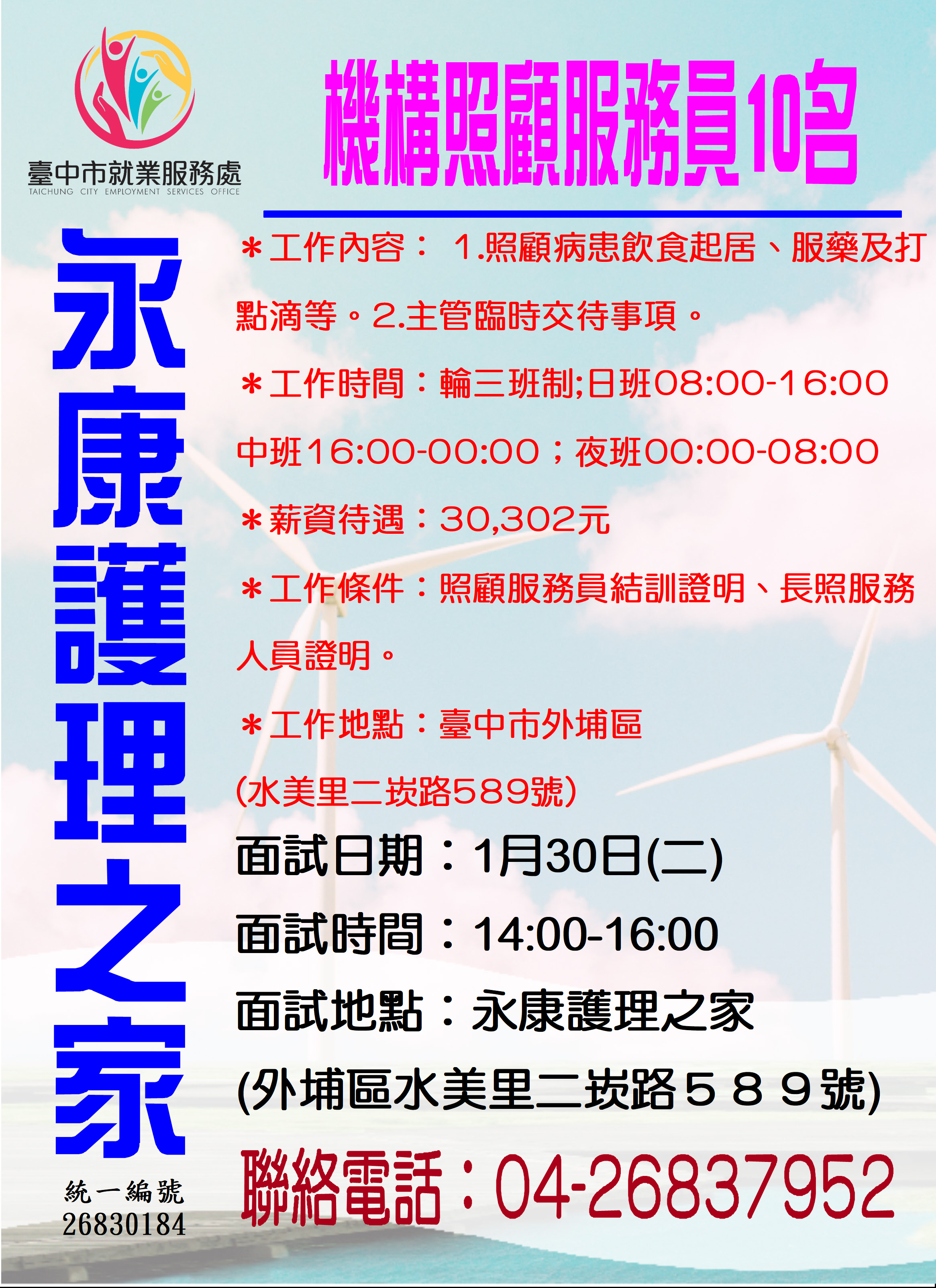 職 缺 一:機構照顧服務員