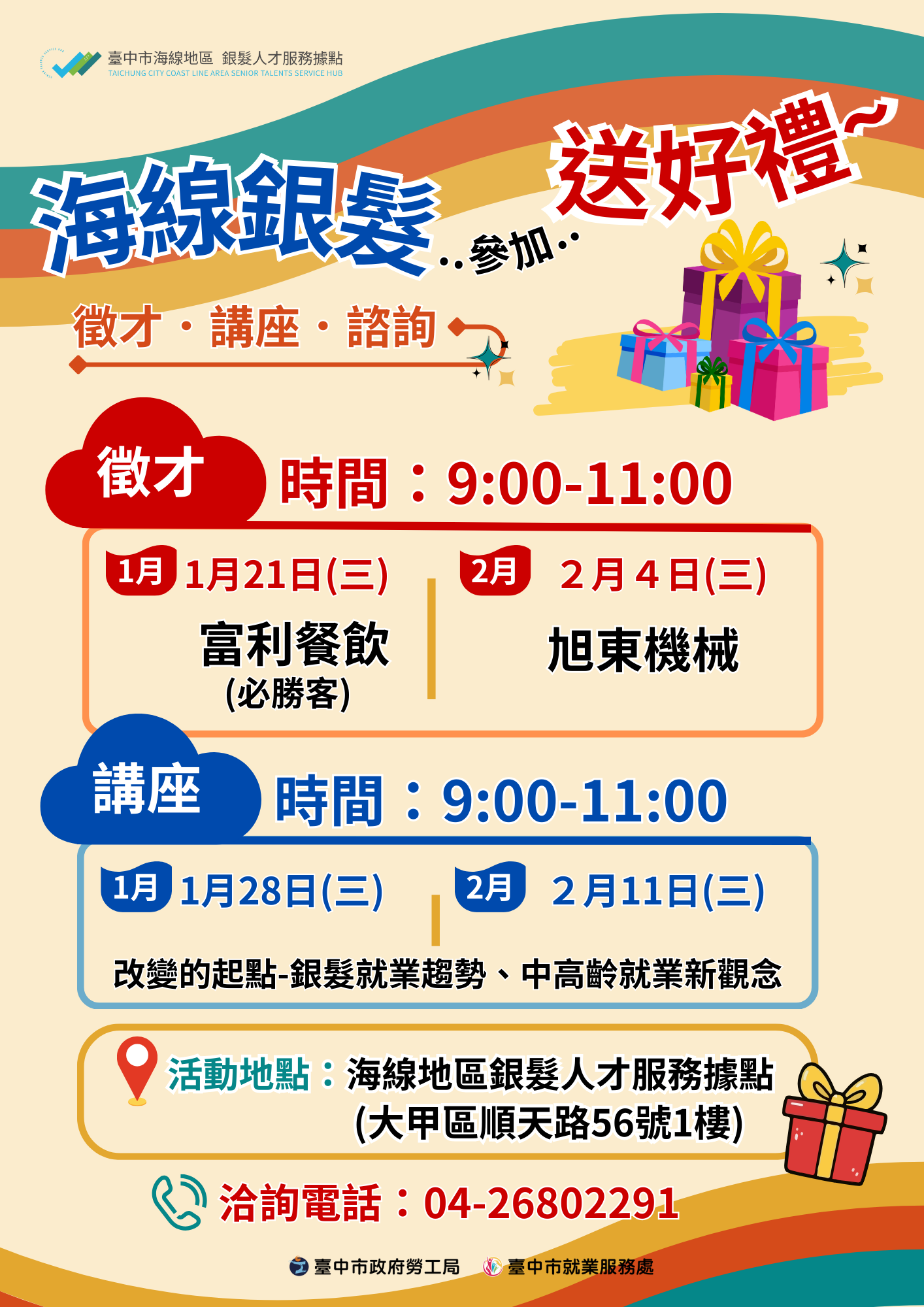 活動地點:海線銀髮人才服務據點(臺中市大甲區順天路 56 號 1 樓)